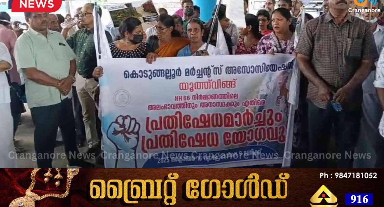 NH 66 നിർമ്മാണത്തിലെ അലംഭാവം കൊടുങ്ങല്ലൂർ മർച്ചന്റ്സ് അസ്സോസിയേഷൻ യൂത്ത് വിങ്ങിന്റെ നേതൃത്ത്വത്തിൽ പ്രതിഷേധ സംഘമവും സംഘടിപ്പിച്ചു
