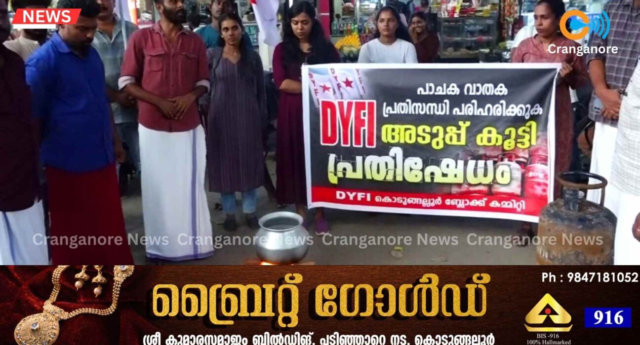 പാചകവാതക പ്രതിസന്ധി  അടിയന്തിരമായി പരിഹരിക്കണമെന്നാവശ്യപ്പെട്ട് ഡി വൈ എഫ് ഐ കൊടുങ്ങല്ലൂർ ബ്ലോക്ക്‌ കമ്മിറ്റിയുടെ നേതൃത്വത്തിൽ കൊടുങ്ങല്ലൂരിൽ അടുപ്പ് കൂട്ടി പ്രതിഷേധം സംഘടിപ്പിച്ചു .വൈകീട്ട് കൊടുങ്ങല്ലൂർ പ്രൈവറ്റ് ബസ് സ്റ്റാൻഡ് പരിസരത്ത് നടന്ന പ്രതിഷേധ സമരം ഡി വൈ എഫ് ഐ തൃശൂർ ജില്ലാ സെക്രട്ടറിയേറ്റ് അംഗം പി . എച്ച്  നിയാസ് ഉദ്ഘാടനം ചെയ്തു.ഡി വൈ എഫ് ഐ  കൊടുങ്ങല്ലൂർ ബ്ലോക്ക് ട്രഷറർ സി. എസ് സുജിത് അധ്യക്ഷത വഹിച്ചു. ഡി വൈ എഫ് ഐ  ബ്ലോക്ക് പ്രസിഡന്റ്‌  സി. കെ ഹാരിസ്,