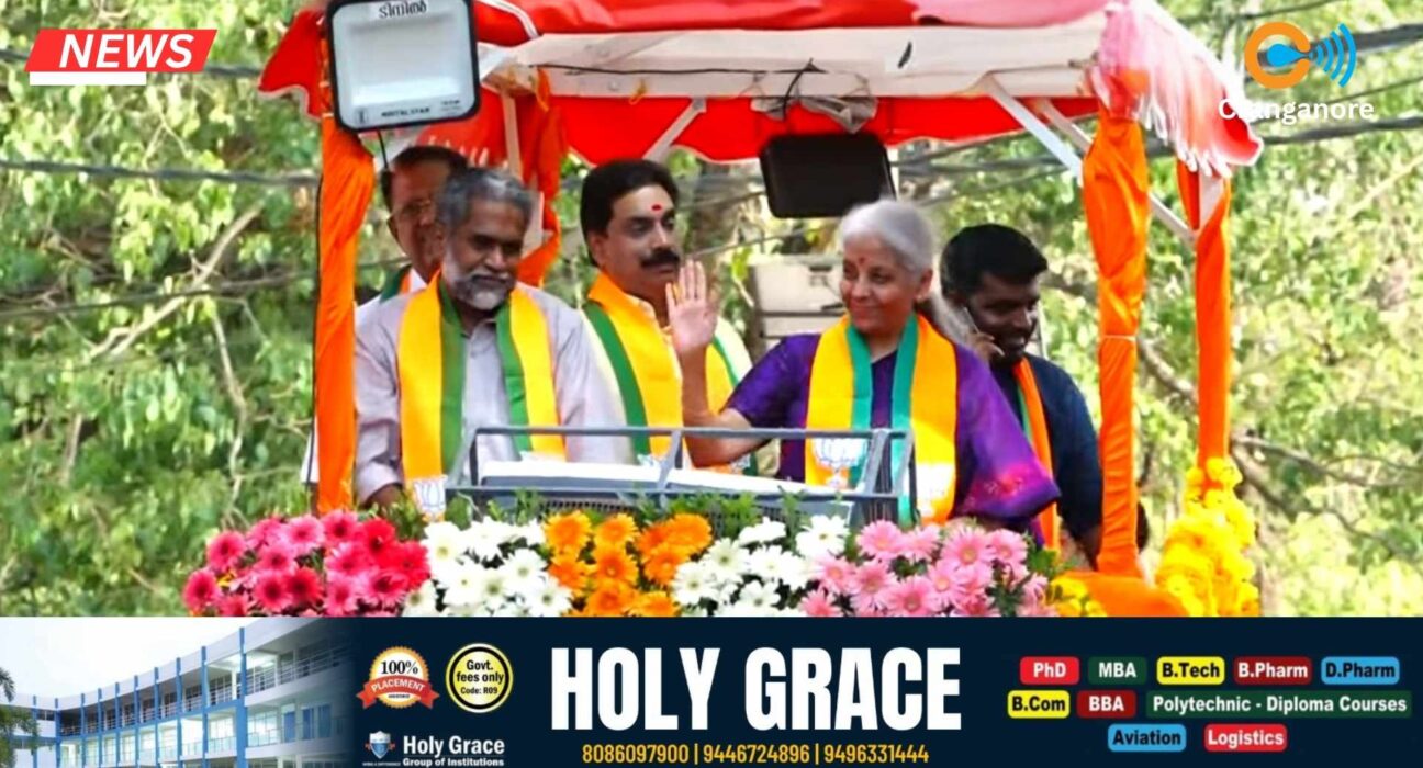 കേന്ദ്രമന്ത്രി നിർമ്മല സീതാരാമൻ പങ്കെടുത്ത റോഡ് ഷോ കൊടുങ്ങല്ലൂരിൽ ജനസാഗരമാക്കി