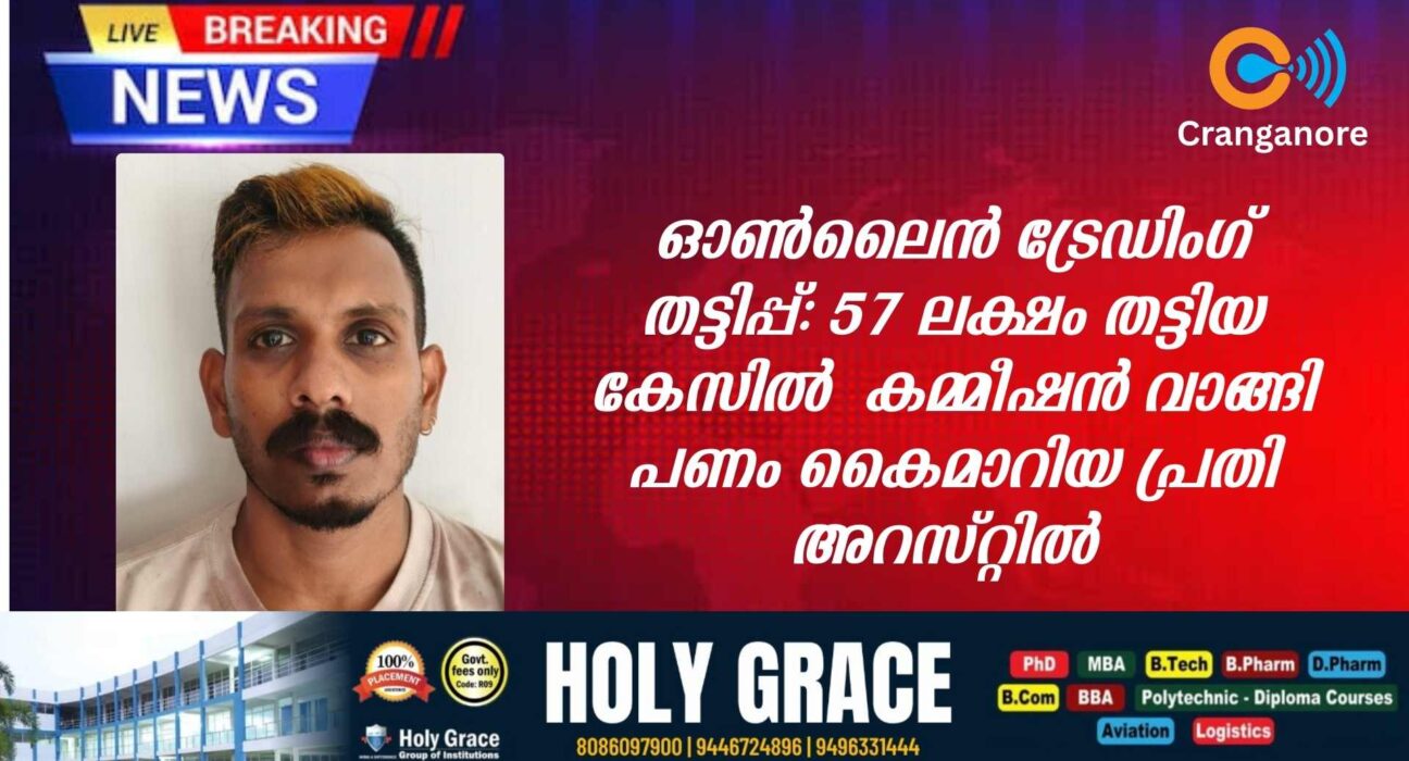 ഓൺലൈൻ ട്രേഡിംഗ് തട്ടിപ്പ്: 57 ലക്ഷം തട്ടിയ കേസിൽ കമ്മീഷൻ വാങ്ങി പണം കൈമാറിയ പ്രതി അറസ്റ്റിൽ